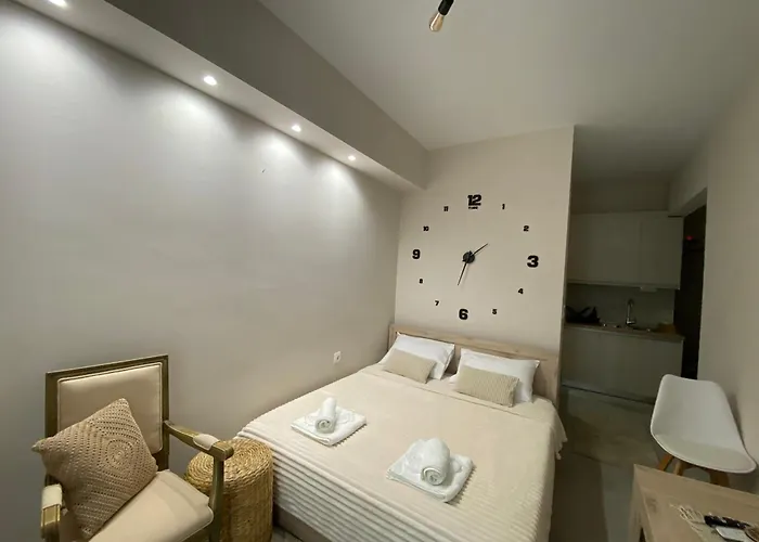 La propriété 8Kto Studio est équipé d'une kitchenette avec une cafétière/théière électrique, un réfrigérateur et de la vaisselle pour assurer votre confort. L'arrêt de bus Platia Aristotelous est à seulement 10 minutes de marche.